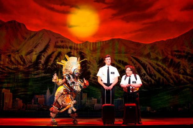 At lunchtime, I was reading Alain de Botton‘s stimulating ‘Religion for Atheists’, and cerebrally considering matters of faith over Schezwan chicken. By the evening, those same matters of faith were exploding in a riot of song, ridicule, dance, parody, music, filth and colour in front of my eyes. No, it wasn’t Catholic Mass, The Book of Mormon has arrived. And dear God, it’s good – or rather, ‘fuck you God’, it’s good. With the sweeping strokes of satire and the broad palette of a cartoon, it ravages its subject like a vicious Rottweiler, but somehow, miraculously, retains a tender heart. It parodies the absurdities of musical theatre and yet it loves every note. It offers us two annoying, misguided, self-centred idiots as heroes, but ensures we care profoundly about their every action. And it viciously rips apart each facet of organised religion and we laugh along at every brutal swipe, yet when Kevin Price fervently implores us to ‘believe’, we really, really want to and cheer the depth of his conviction. The show is Broadway-slick and has the precision and broadness of animation, not least in big-haired Gavin Creel‘s angular, physical performance where every thought and word seems to ripple out to every sinew of his body. Jared Gertner, the other American in the cast, surprises us with both his tenderness and his rockin’ transformation from Elder zero to Mormon hero. Alexia Khadime and Giles Terera‘s father and daughter are the truthful heart of the story and provide the bedrock for all the craziness around them. And Stephen Ashfield is just a big gay riot.