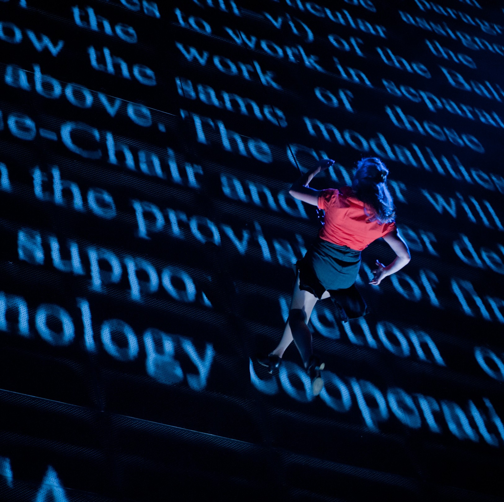 First seen a couple of years ago, As the World Tipped is one of the most successful large-scale outdoor shows that the UK has produced in recent times. It been around the globe and made a welcome return as the opening night show for this year’s Greenwich and Docklands International Festival. I’ve seen it a few times now, both in the UK and abroad, so it’s pleasing to see that it’s still in very good shape. Wired Aerial Theatre‘s creation is a vertical take on the issue of climate change, a fusion of wall-based aerial work and intricate projections. We start at the Copenhagen Summit, played out on a flat stage; it’s not really a spoiler (the crane gives it away) to say that the floor’s gonna tip… and tip it does. Reminiscent of the horrible scenes from Titanic, tables, chairs, boxes, flags and people cascade off the edge to an unseen doom. Five of the delegates cling on for dear life and as the wall is hoisted high into the night sky, they are put through a series of disturbing eco-disaster scenarios; they’re blown through the air in a hurricane, caught in a drought, burned underfoot, washed away in floods and surreally forced to run over pages and pages of useless bureaucratic documentation. The images are stark, the message simple. The performers (and their counterbalancers at the side) look tiny and vulnerable, and the piece cleverly combines our fears for the people suspended so high in the air with our fears for the planet. We know it’s going to end badly. It’s disconcerting viewing, executed with discipline, precision and skill and is a credit to the sector. They’re on tour again this summer, be brave and cast your eyes to the sky…